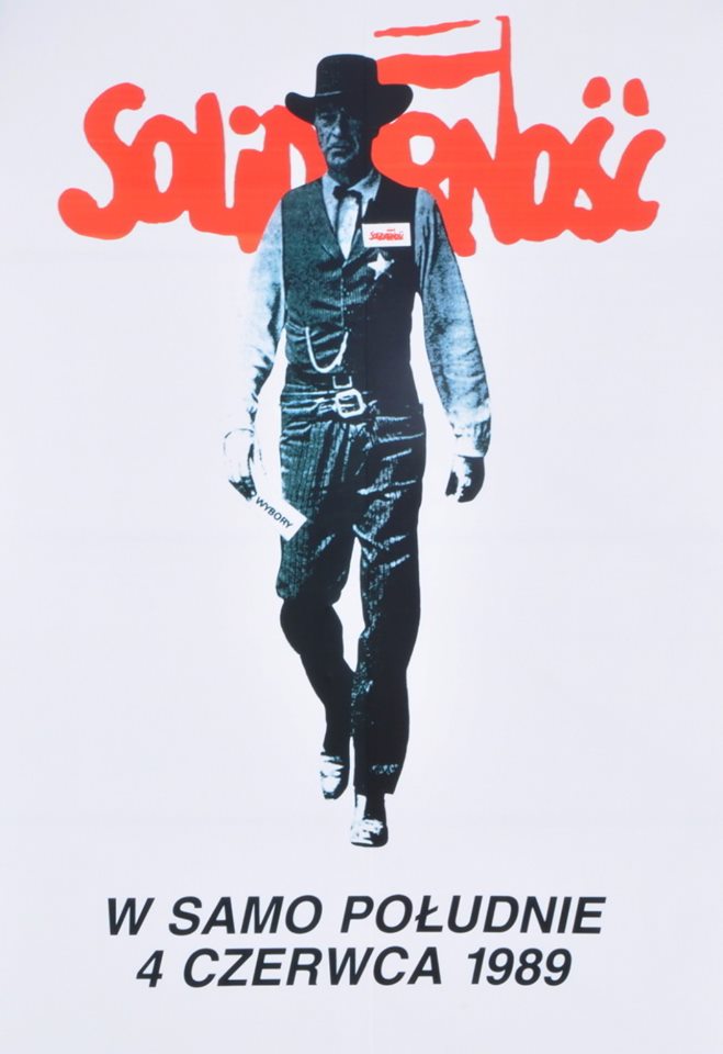 Białe tło. W tle Gary Cooper uchwycony w kroczeniu ku ostatecznej rozprawie dobra ze złem. Nad gwiazdą szeryfa dumnie widnieje solidarnościowa plakietka, zaś w dłoni zamiast rewolweru znajduje się karta do głosowania. Symboliczna scena z kultowego westernu „W samo południe” stała się zakrojoną (w granicach ówczesnych możliwości) akcją marketingową, która spadła na Warszawę bladym świtem. Plakaty autorstwa studenta trzeciego roku ASP – Tomasza Sarneckiego ścieliły ściany stolicy. Przesłanie było oczywiste – idź na wybory i przyczyń się do obalenia komunizmu. Grafika choć ryzykowna, ażeby nie powiedzieć – kontrowersyjna wzbudzała w demokratycznej opozycji mieszane uczucia. Odwagą wykazał się wówczas Henryk Wujec, który w strukturach demokratycznych podjął decyzję (o ironio!) niedemokratyczną. Plakat jest konfrontacyjny i taki ma zostać. Kropka.