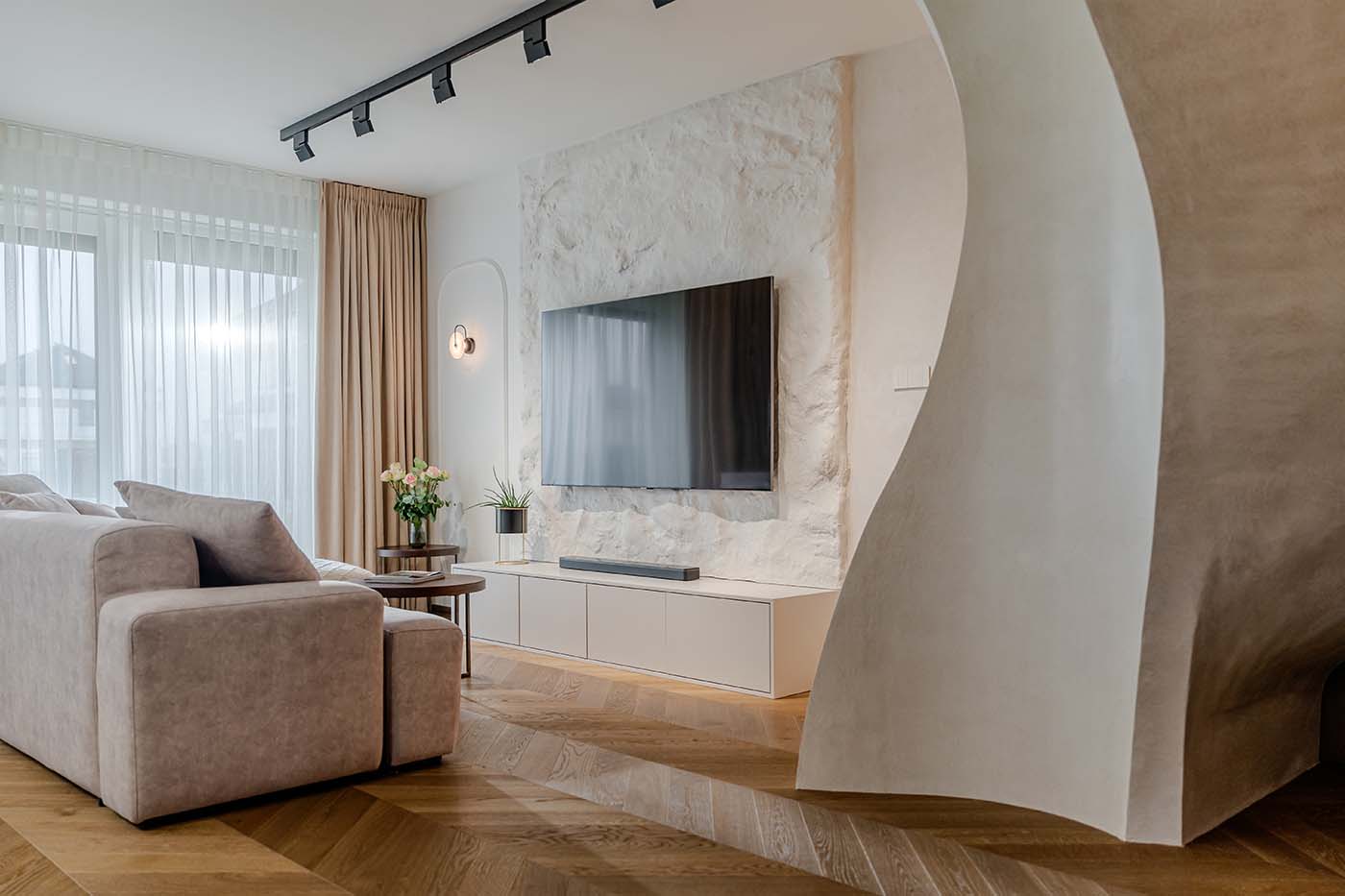 – Wykończenie wnętrza to zawsze proces indywidualny, jednak z perspektywy planowania prac i koordynacji ekip widać powtarzalne kierunki, które warto uwzględnić już na etapie harmonogramu. Jednym z nich są zaoblenia, obecne nie tylko w zabudowach stolarskich, ale również w meblach wolnostojących oraz ceramice. W zabudowach meblowych fronty, bryły wysp kuchennych oraz elementy wyposażenia. Drugim wyraźnym trendem jest stosowanie systemów szynowych montowanych w suficie oraz rozwiązań oświetleniowych ukrytych w jego strukturze. Takie podejście daje dużą elastyczność aranżacyjną, ale wymaga precyzyjnej koordynacji elektryki i prac sufitowych już na wczesnym etapie realizacji – mówi Magdalena Barszczak-Matys, Deer Design.